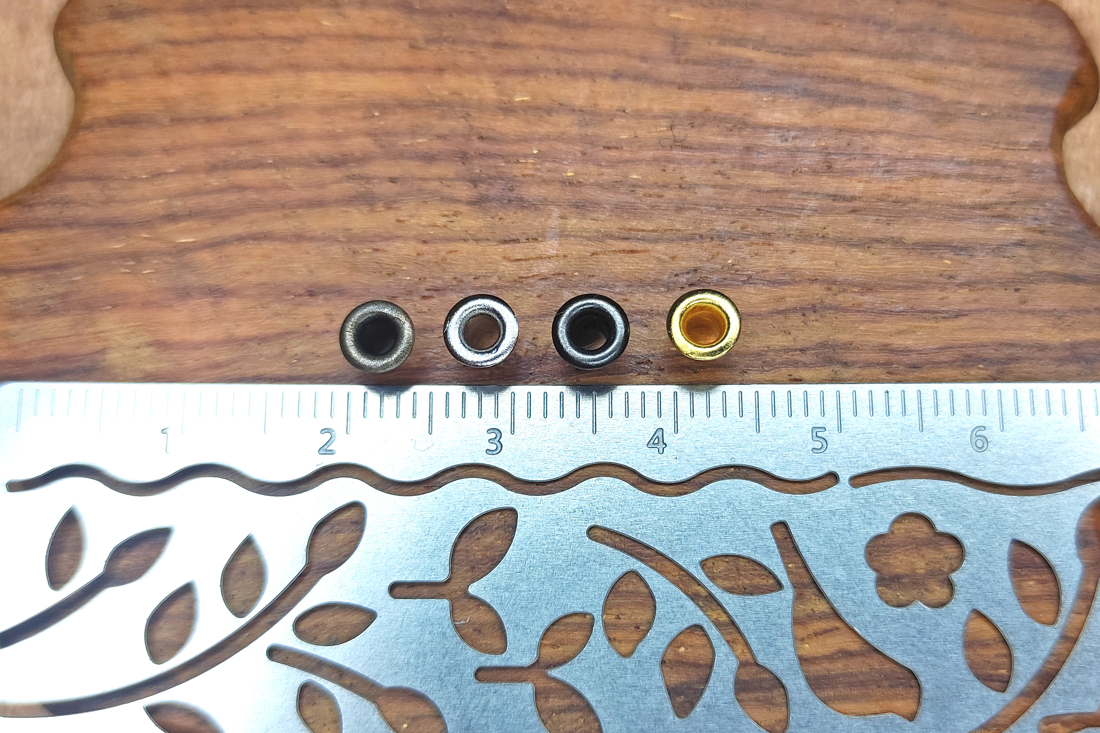 • Немного крупнее стандартных люверсов 2×4×4 мм (см. фото)