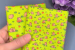 Хлопковый сатин с качественной печатью не линяет и не оставляет следов на теле куклы. Даже на темных принтах изнанка светлая, так как рисунок наносится с лицевой стороны. Ткань можно стирать — рисунок не смоется и не потускнеет при соблюдении рекомендаций по уходу.